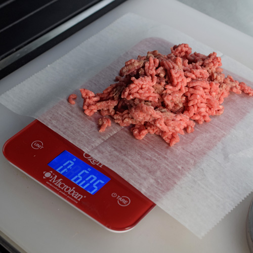Cuando muelo mi carne, muelo una rebanada de pan por cada libra. Si no, obtengo la carne molida más fresca que puedo comprar, lo que he hecho para estas hamburguesas.